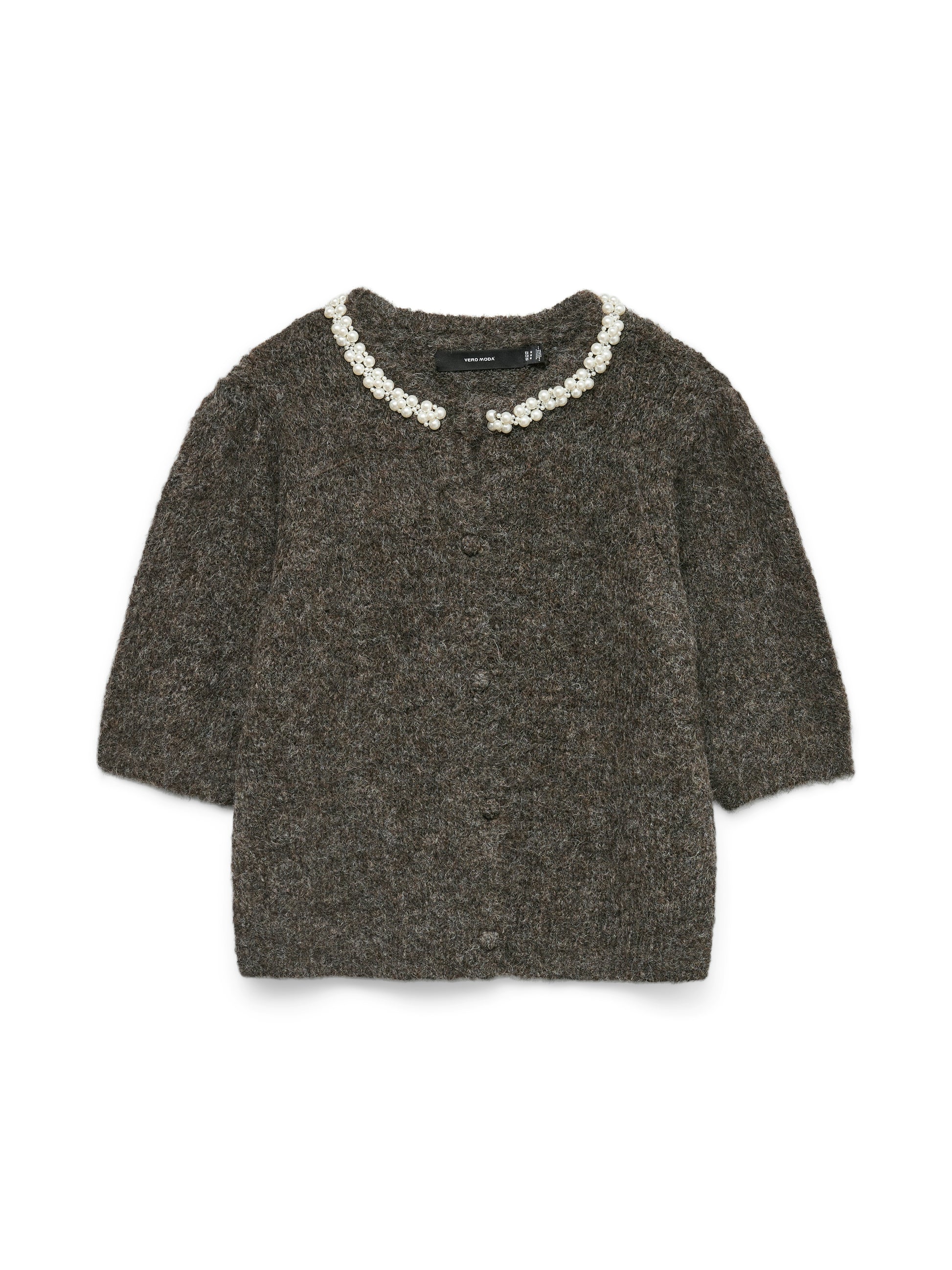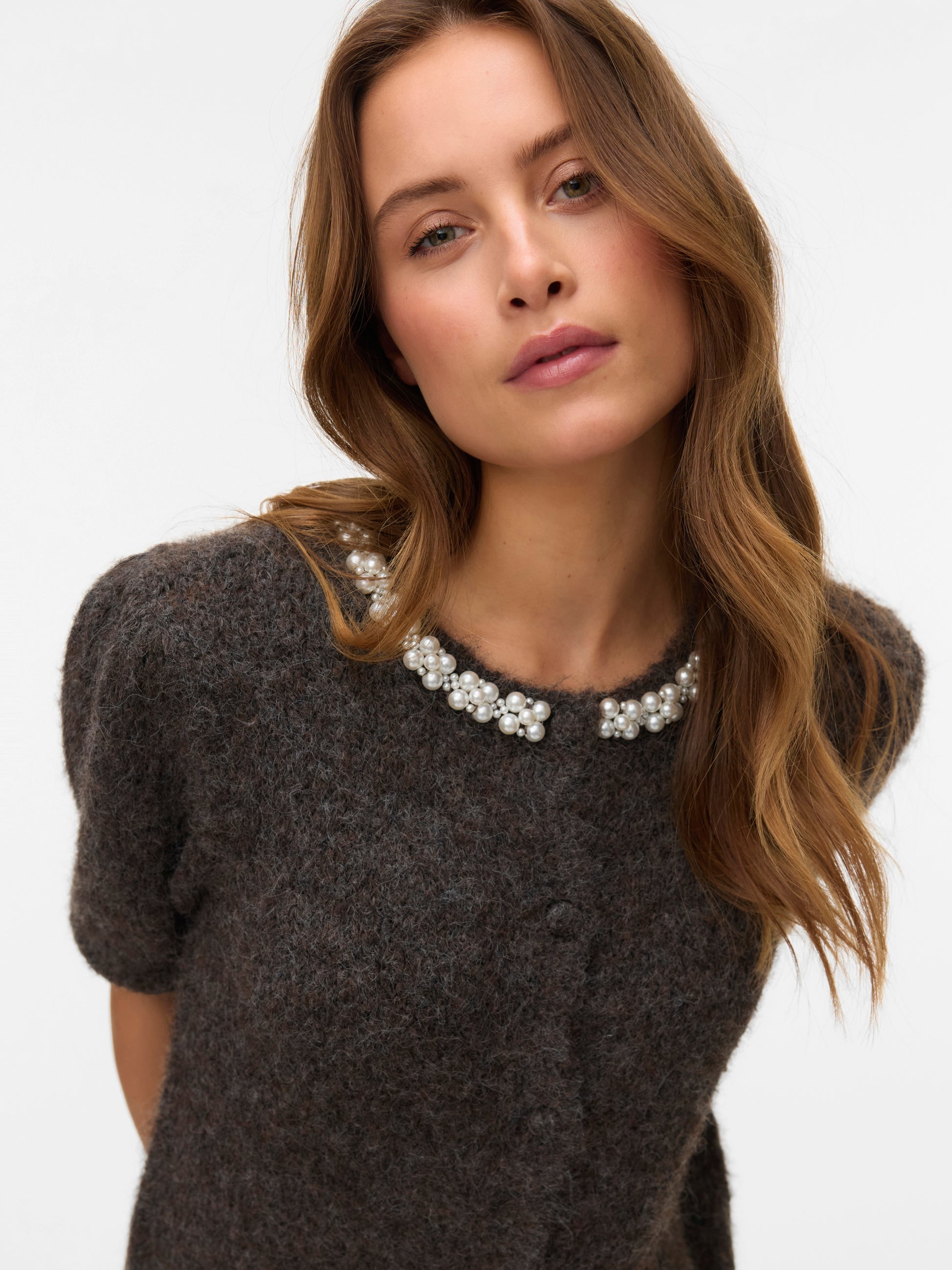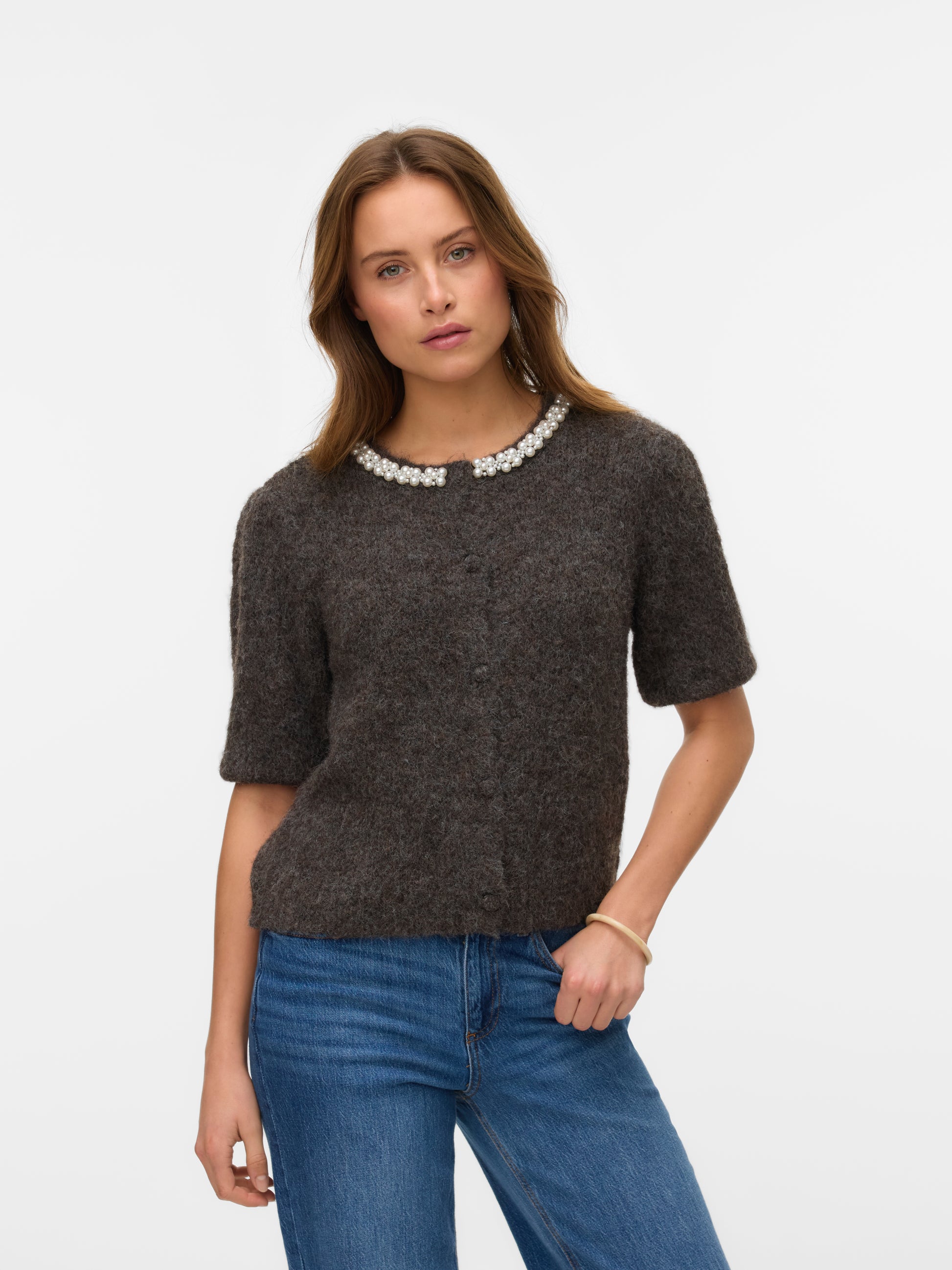 Eine zusätzliche Schicht, die deinen Look mühelos aufpeppt? Dieser leichte Cardigan ist perfekt zum Unter- und Überziehen, überzeugt aber auch allein. Style ihn im Alltag vielseitig mit einer Jeans oder trag dazu einen Rock und Stiefel, wenn du Lust auf ein schickes Outfit hast. - Produkttyp : Strickjacke - Hals : Rundhals - Ärmel : Halbarm - Verschluss : Knopfleiste - Details : Perlen-Verzierung - Passform : Normal geschnitten