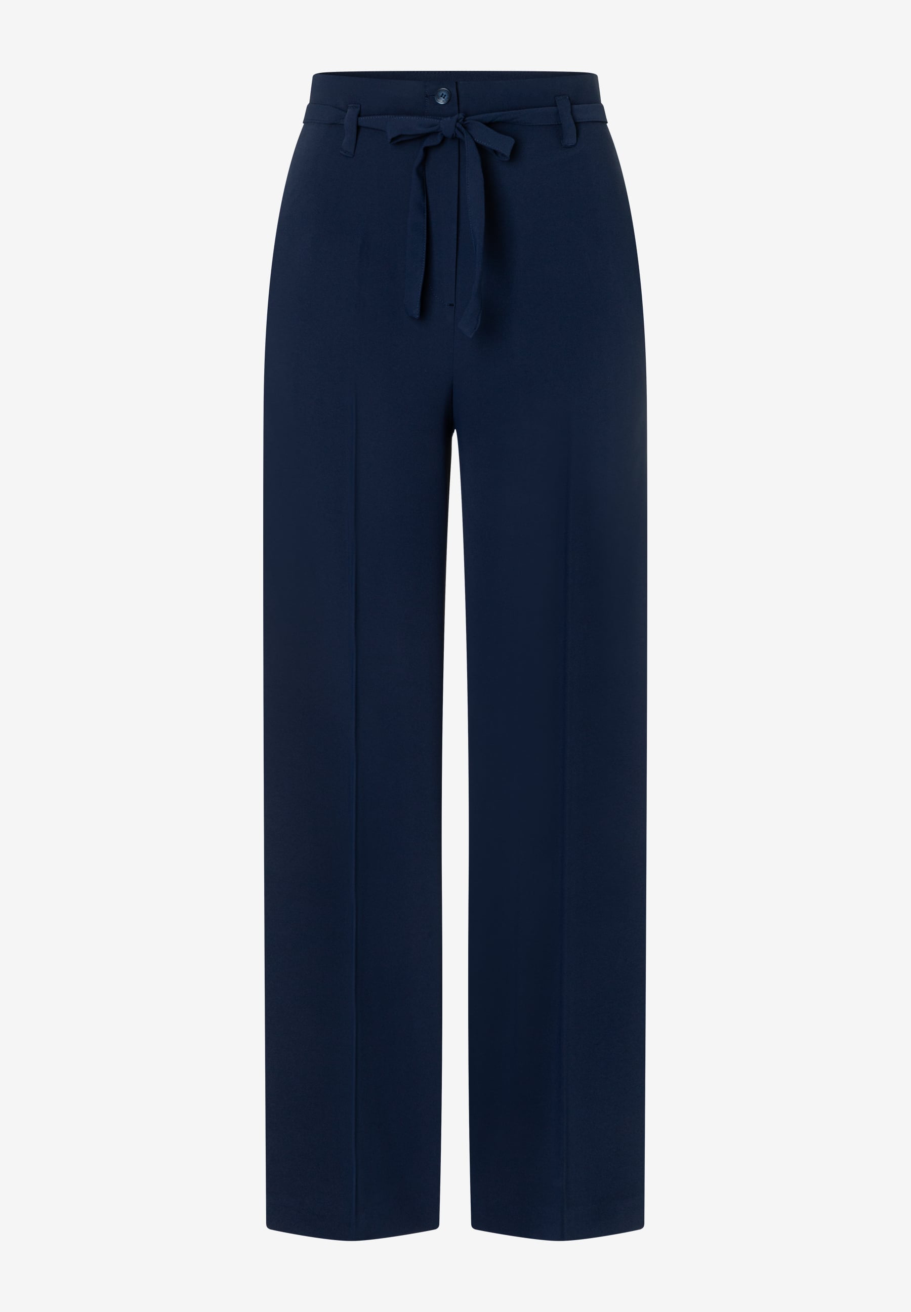 Die weit geschnittene Hose von MORE & MORE mit schmalem Bindegürtel und Bügelfalte präsentiert sich in fließender Qualität und sorgt für einen modernen, stilvollen Look. Sie ist ein idealer Begleiter für Office, City oder Dinner und kann mit passender Blusenjacke zu einem trendstarken, sportiven Zweiteiler kombiniert werden.