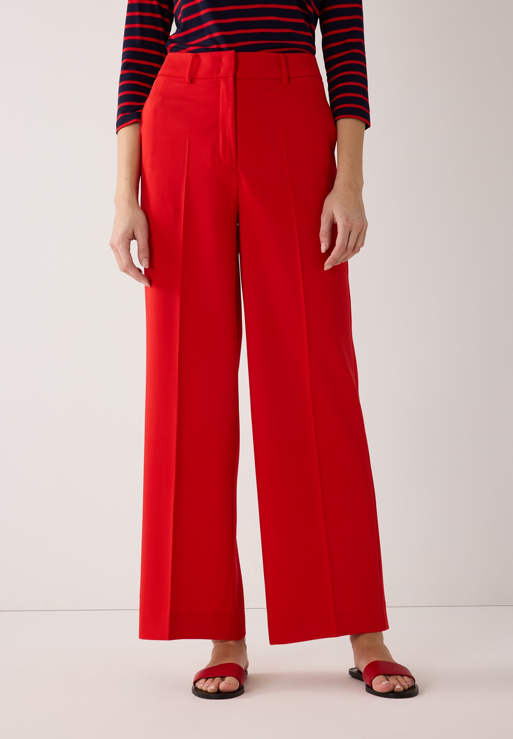 Die weite, rote Hose von MORE & MORE in fließender Qualität kann sowohl mit Ringelshirt und Sneakers als auch mit passendem Blazer und Heels gestylt werden.