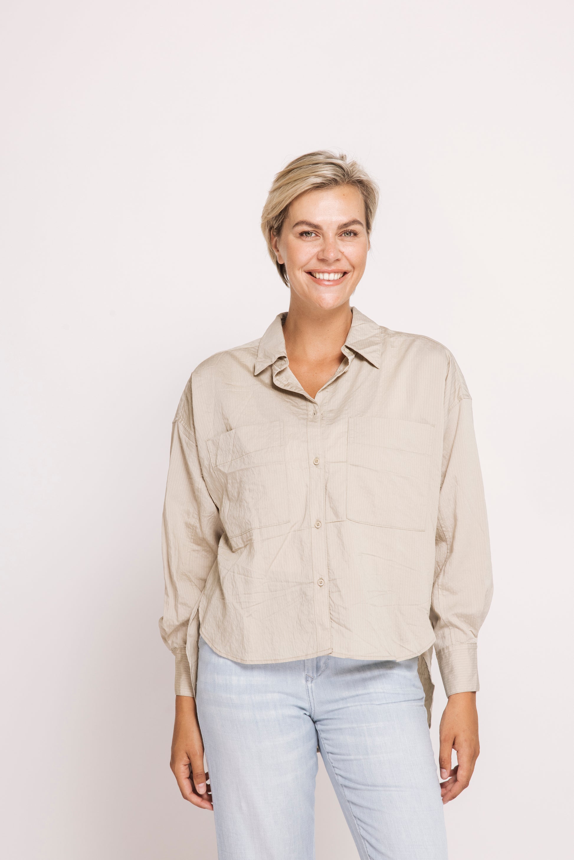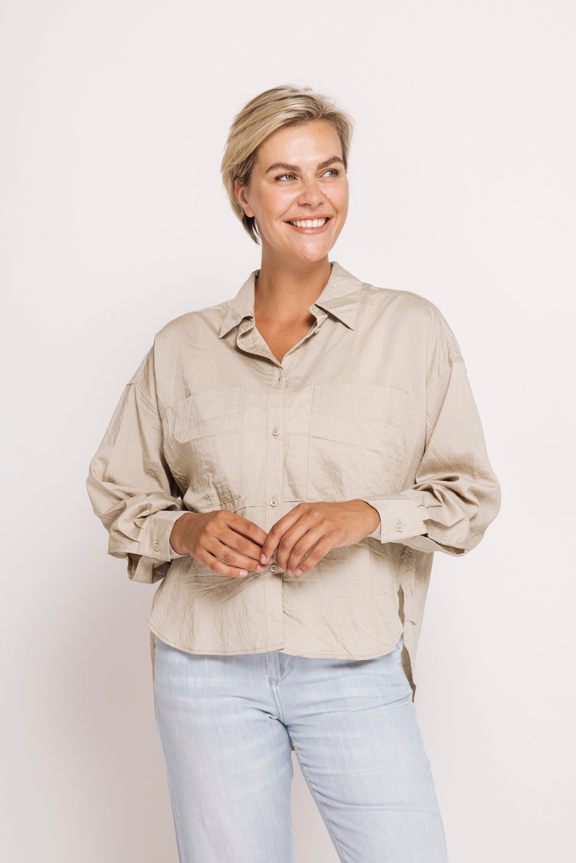 - Klassischer Hemdkragen mit durchgehender Knopfleiste