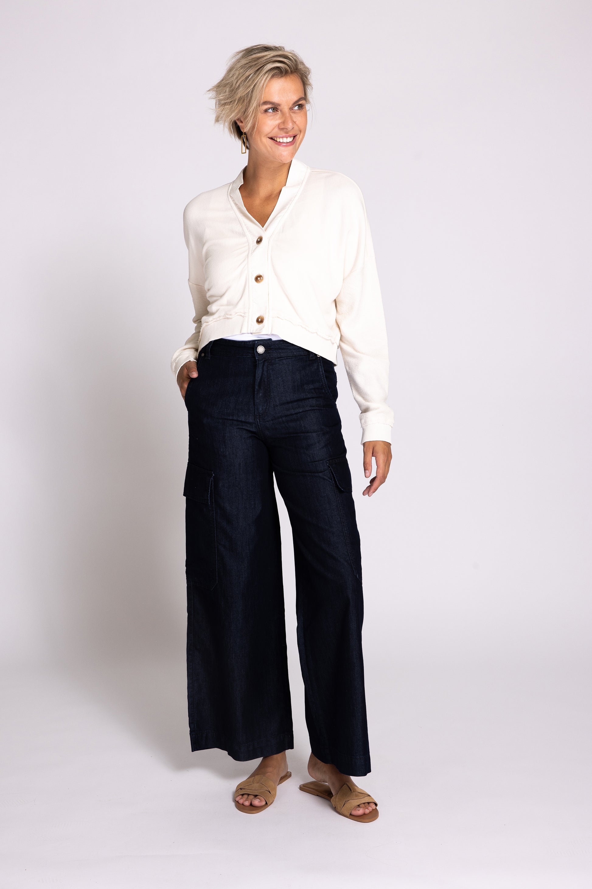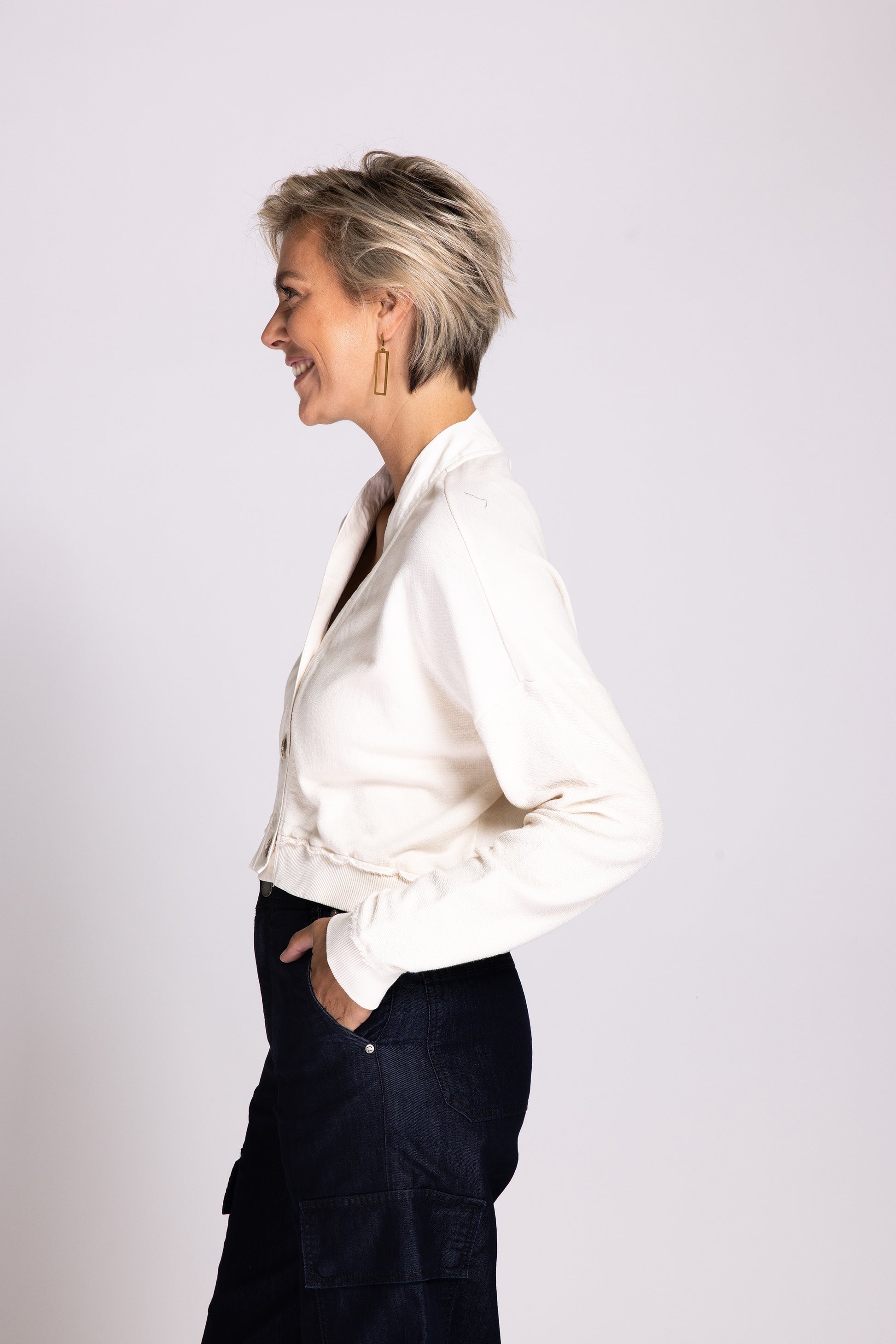 - Am Rücken eine vertikale Ziernaht mit markantem Patch-Detail